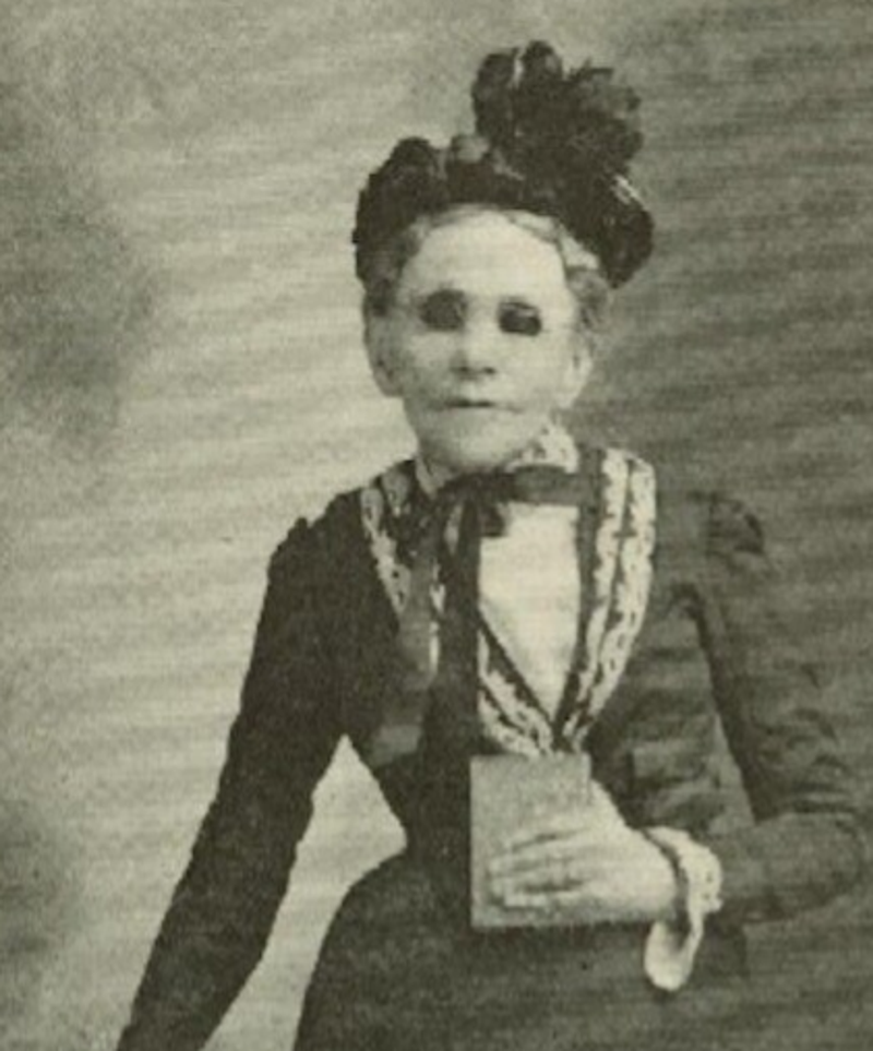 Fanny Crosby in 1906, captured as she appeared when speaking in public. From Memories of Eighty Years, published by James H. Earle & Company, Boston.